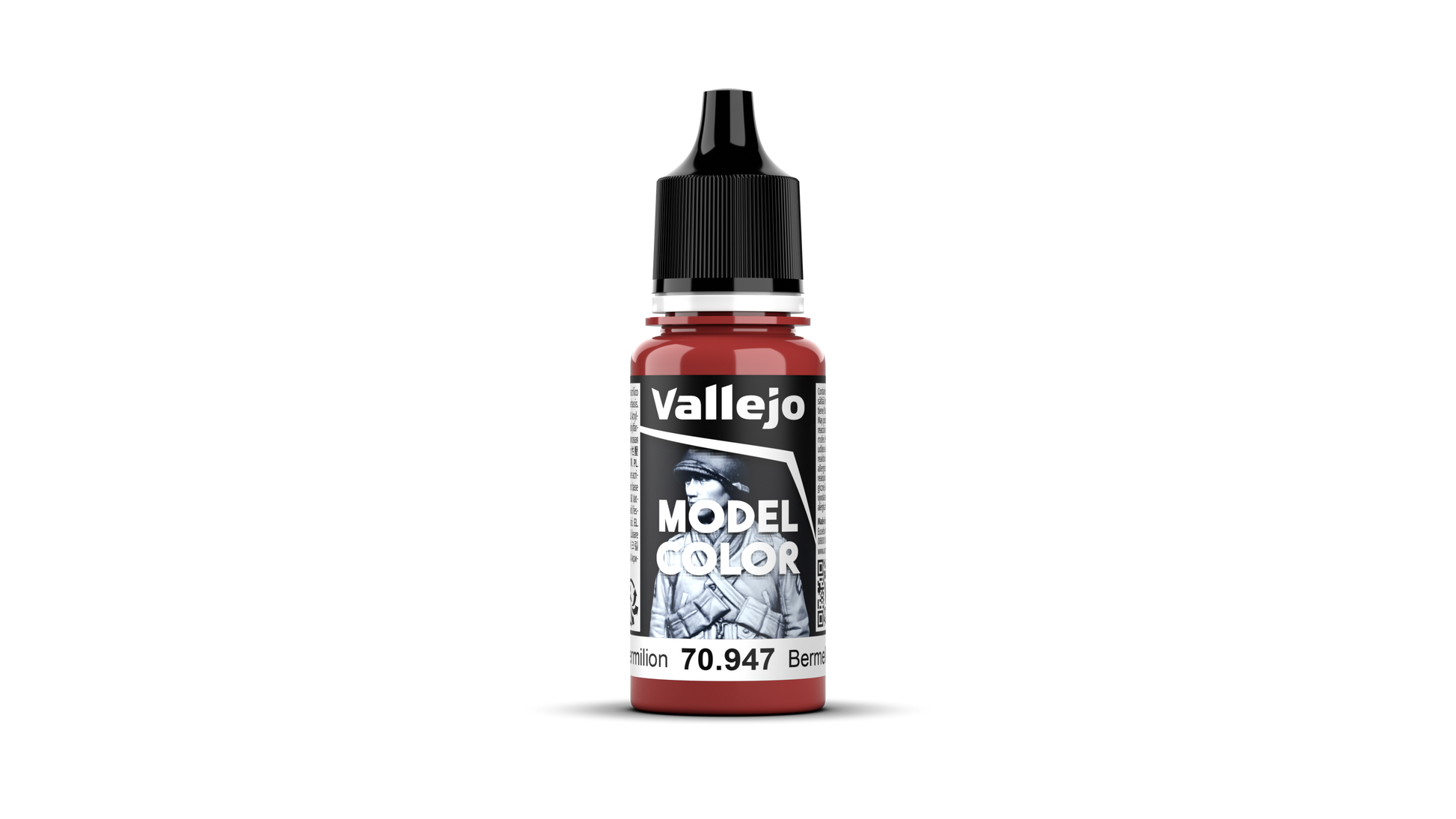 Nueva fórmula de Pintura acrílica Model Color - en frasco transparente de 18ml. con cuentagotas. Pinturas acrílicas base agua. 70947 Bermellón Oscuro (038)