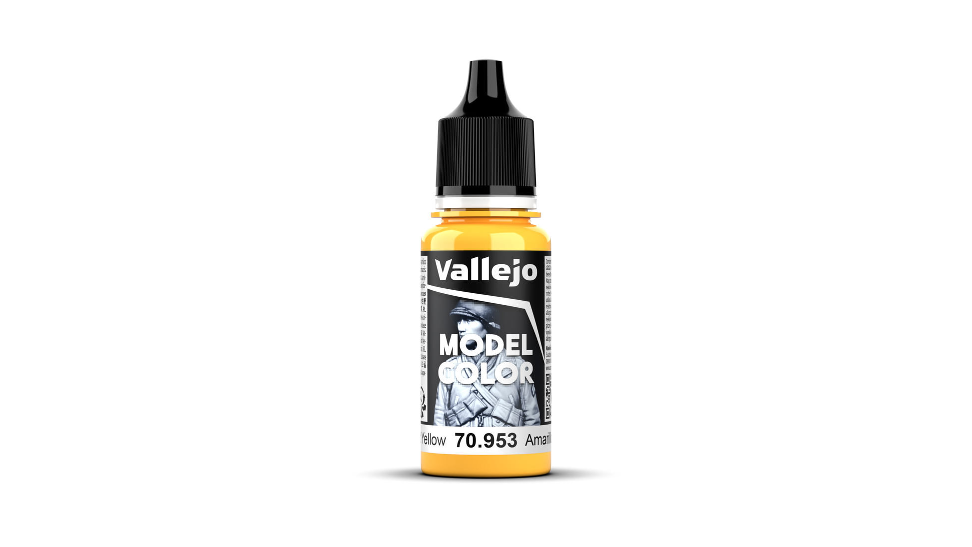 Nueva fórmula de Pintura acrílica Model Color - en frasco transparente de 18ml. con cuentagotas. Pinturas acrílicas base agua. 70953 Amarillo Mate (027)