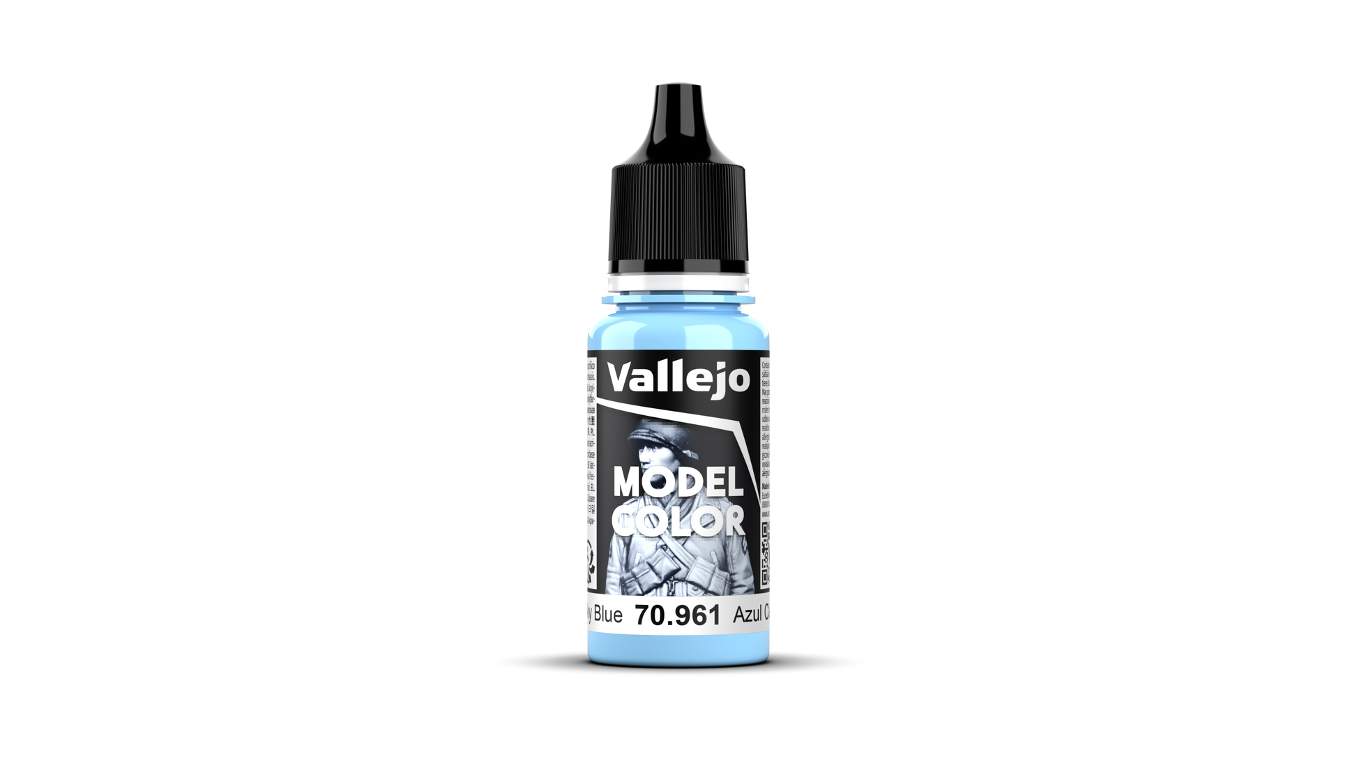 Nueva fórmula de Pintura acrílica Model Color - en frasco transparente de 18ml. con cuentagotas. Pinturas acrílicas base agua. 70961 Azul Cielo (064)
